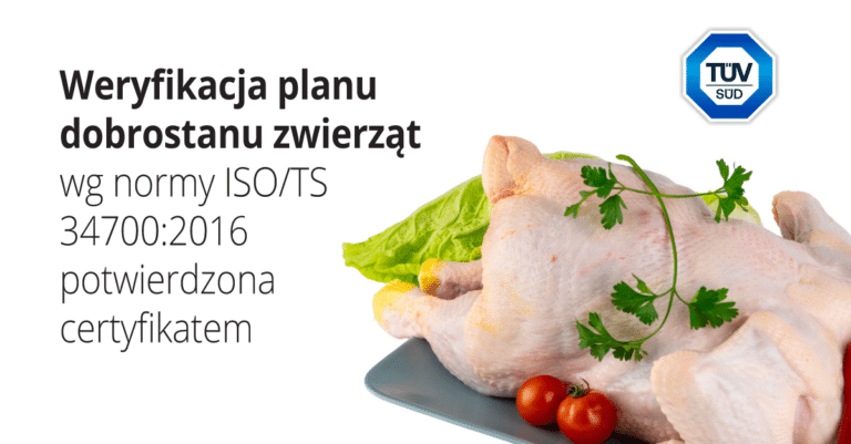 Weryfikacja planu dobrostanu zwierząt wg normy ISO/TS 34700:2016 potwierdzona certyfikatem