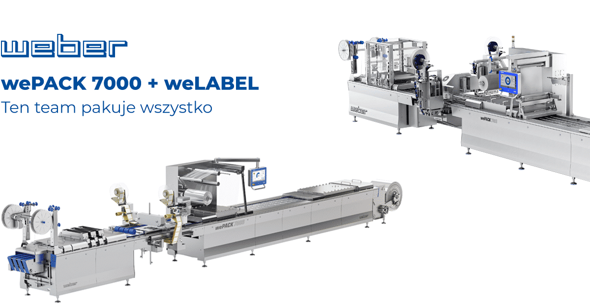 Ochrona produktu i wydłużenie okresu przydatności do spożycia, bycie jak najbardziej przyjaznym w kontekście zużycia zasobów i nadającym się do recyklingu, dobry wygląd na półce w supermarkecie – opakowania do żywności muszą spełniać wiele zadań. Dzięki termoformującej maszynie pakującej Weber wePACK 7000 i etykieciarce poprzecznej weLABEL można z łatwością spełnić te wymagania i pakować produkty w sposób wydajny i bezpieczny. Dzięki unikalnej integracji obu komponentów, łączą się one w jedną całość i tworzą idealny zespół do pakowania: